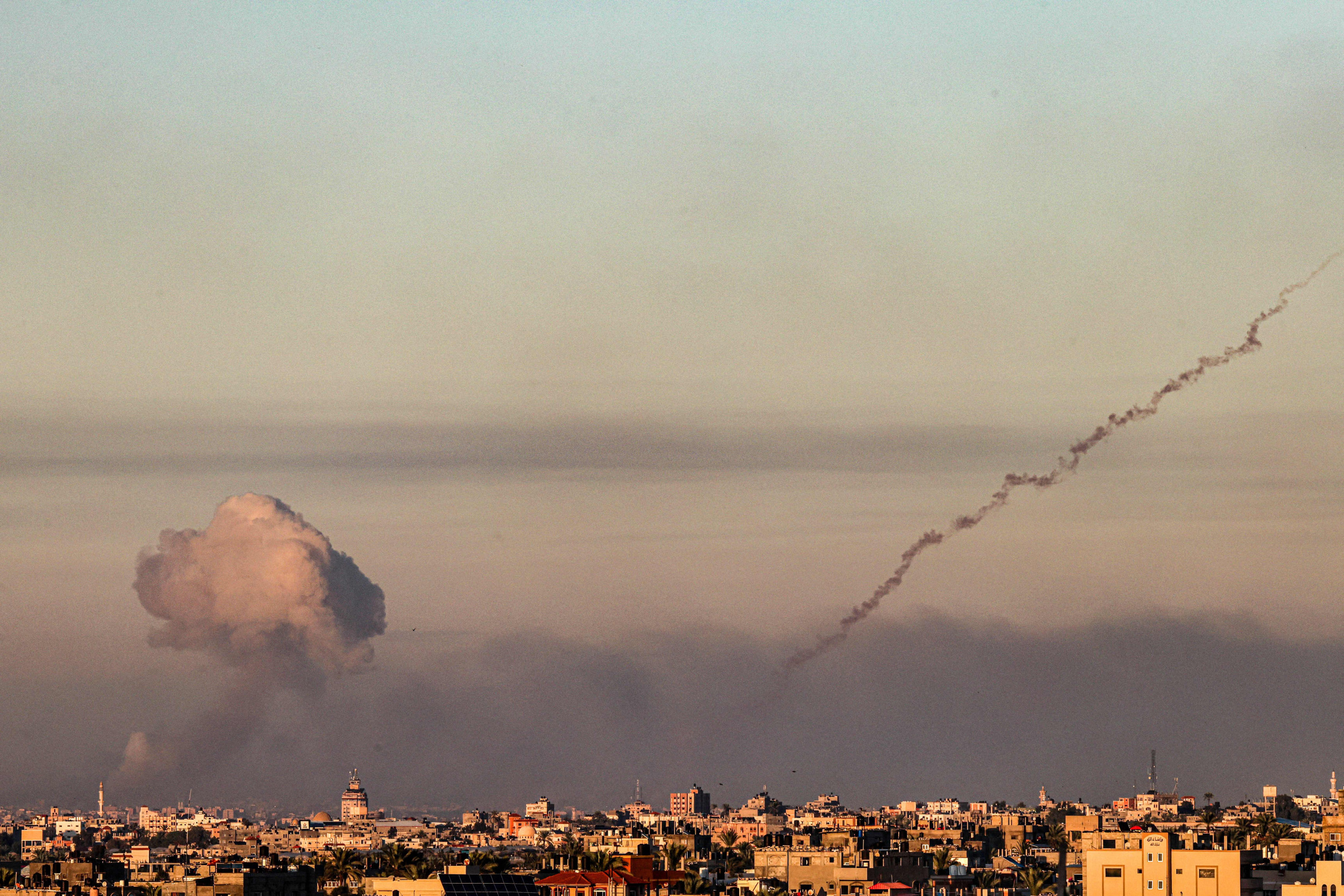Smoke billows following an Israeli strike on Khan Younis as a rocket is fired from the southern Gaza strip in route of Israel on November 16, amid the persevering with battles between Israel and the Palestinian high-tail Hamas.